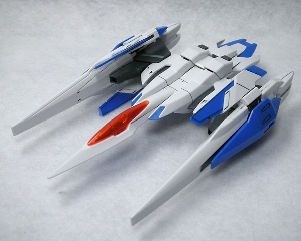 戦闘機というより、ダブルオーのツインドライブを安定可動するための部品の色が強い機体、「オーライザー」。