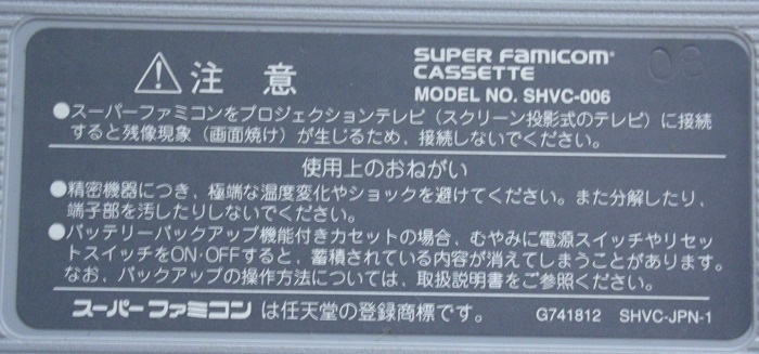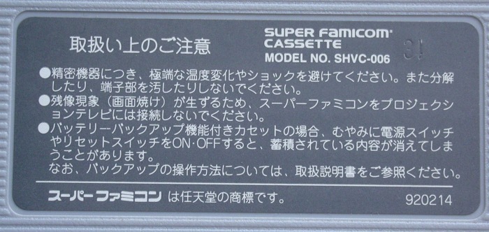 それを調べるために、所有しているスーパーファミコンソフトの裏ステッカーを調べてみました。